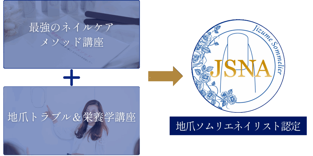 ミドルコース、初心者コースの方は、カリキュラムに「最強のネイルケアメソッド」と「地爪トラブル&栄養学」の両方が含まれており、ご受講後は【地爪ソムリエネイリスト】の認定となります。