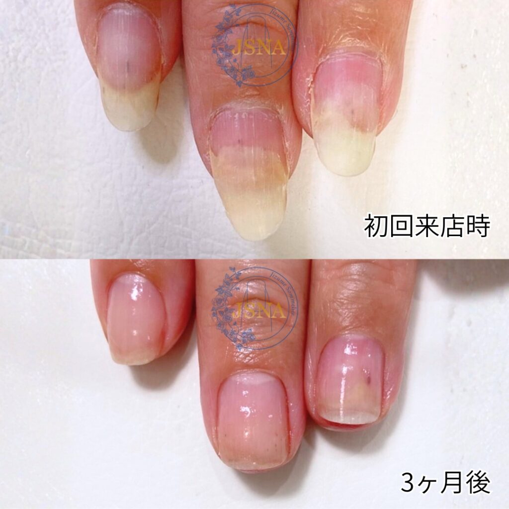 お写真は最強のネイルケア技術によって剥離のお悩みが解消された症例です。